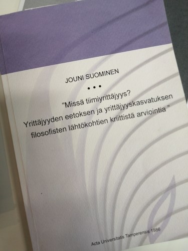 MISSÄ TIIMIYRITTÄJYYS? – Yrittäjyyden eetoksen ja yrittäjyyskasvatuksen filosofisten lähtökohtien kriittistä arviointia